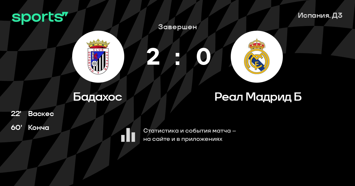 Бадахос – Реал Мадрид Б: Реал Мадрид Б побеждает в 3 последних очных матчах в турнире «Испания. Д3»
