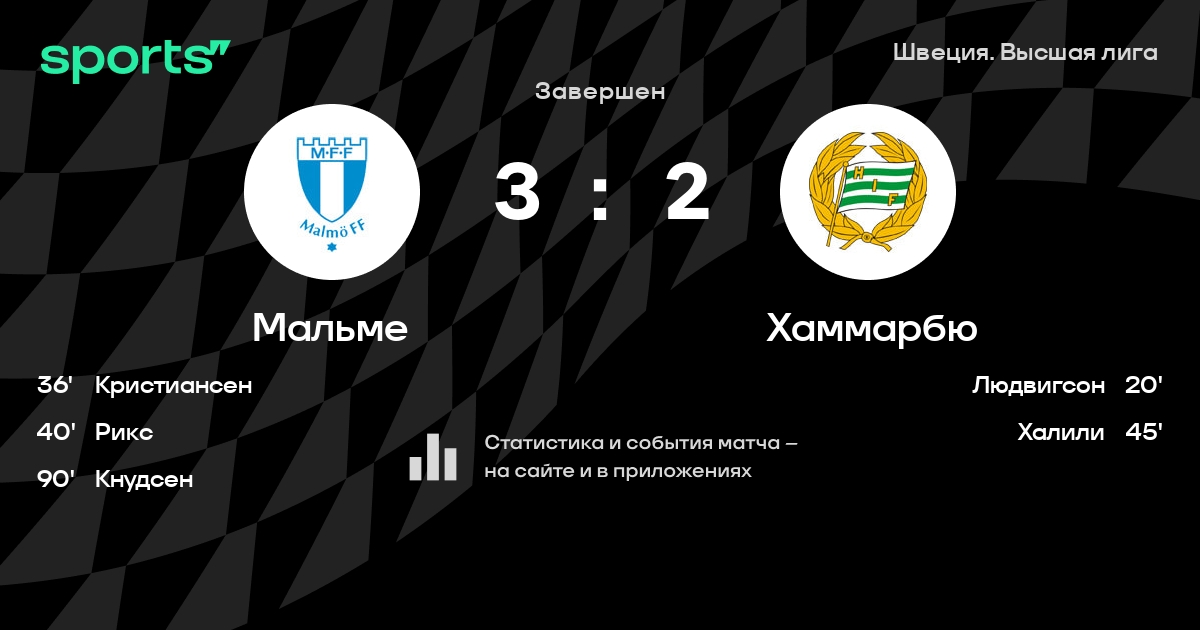 Юханссон - Кнудсен, Брурссон, Ахмедходжич, Ларссон - Инносент, Кристиансен, Рикс, Тойвонен, Бергет - ЧолакЗапасные: Нильссон, Беймо, Нильсен, Вагич, Налич, Нанаси, Сарр