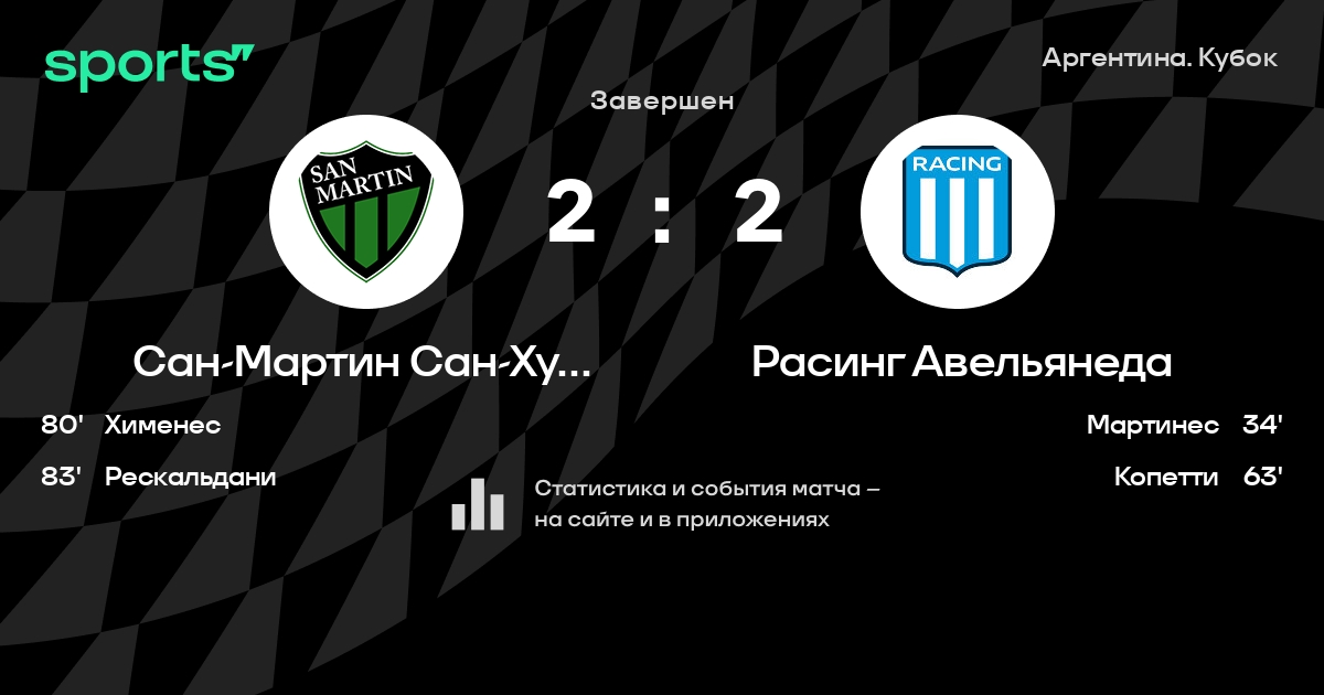 Сан-Мартин Сан-Хуан – Расинг Авельянеда: коэффициенты