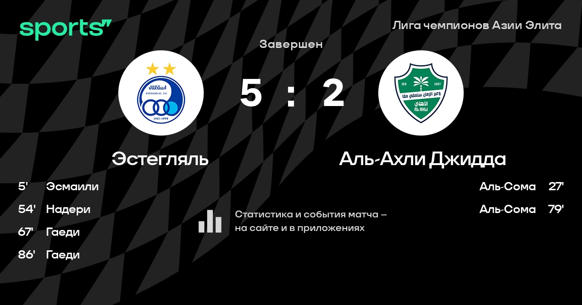Эстегляль – Аль-Ахли Джидда: Эстегляль забивает в 4 последних матчах против этого соперника.