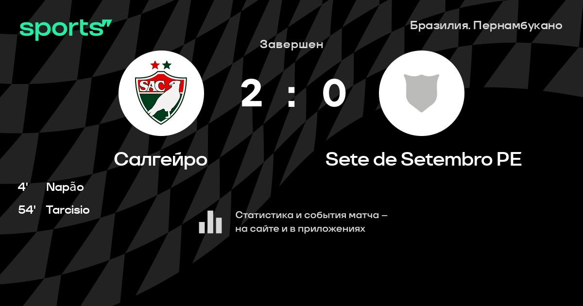 Салгейро – Sete de Setembro EC: Sete de Setembro EC побеждает в 3 последних очных матчах в турнире «Бразилия. Пернамбукано»