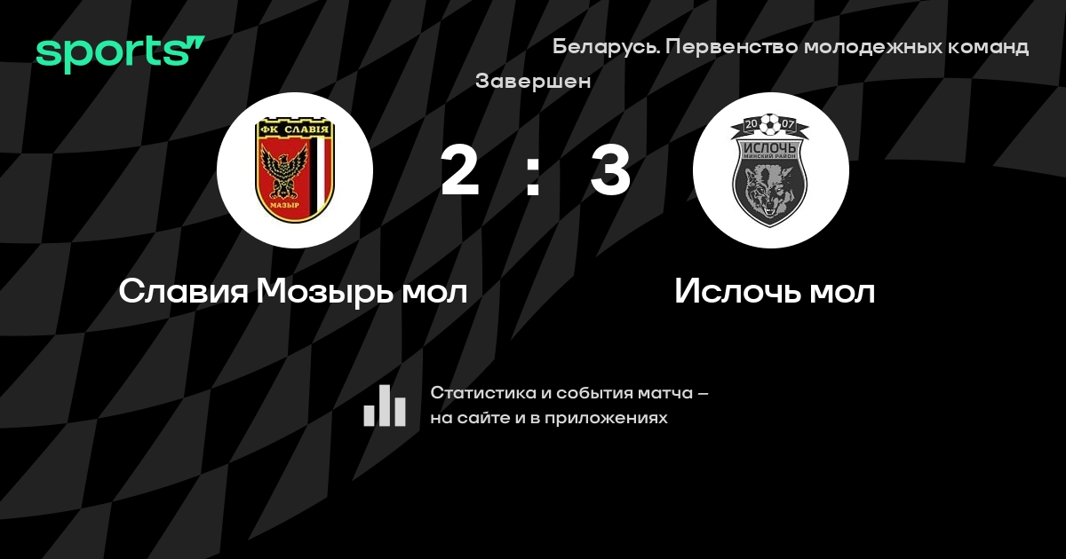 Ислочь мол не выигрывает в 5 последних матчах в гостях в турнире «Беларусь. Первенство молодежных команд»