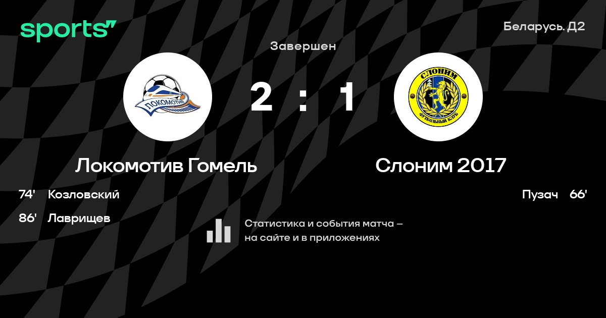Локомотив Гомель – Слоним 2017: Слоним 2017 забивает в 3 последних матчах против этого соперника