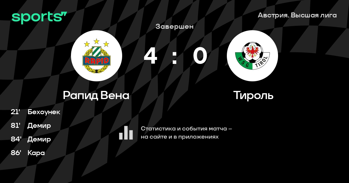Рапид Вена не проигрывает в 7 из 9 последних матчей