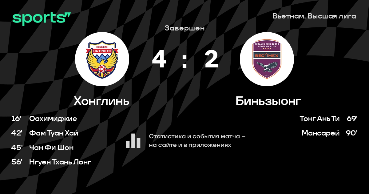В последних 5 играх Биньзыонг забивает в среднем 1.00 гола за игру