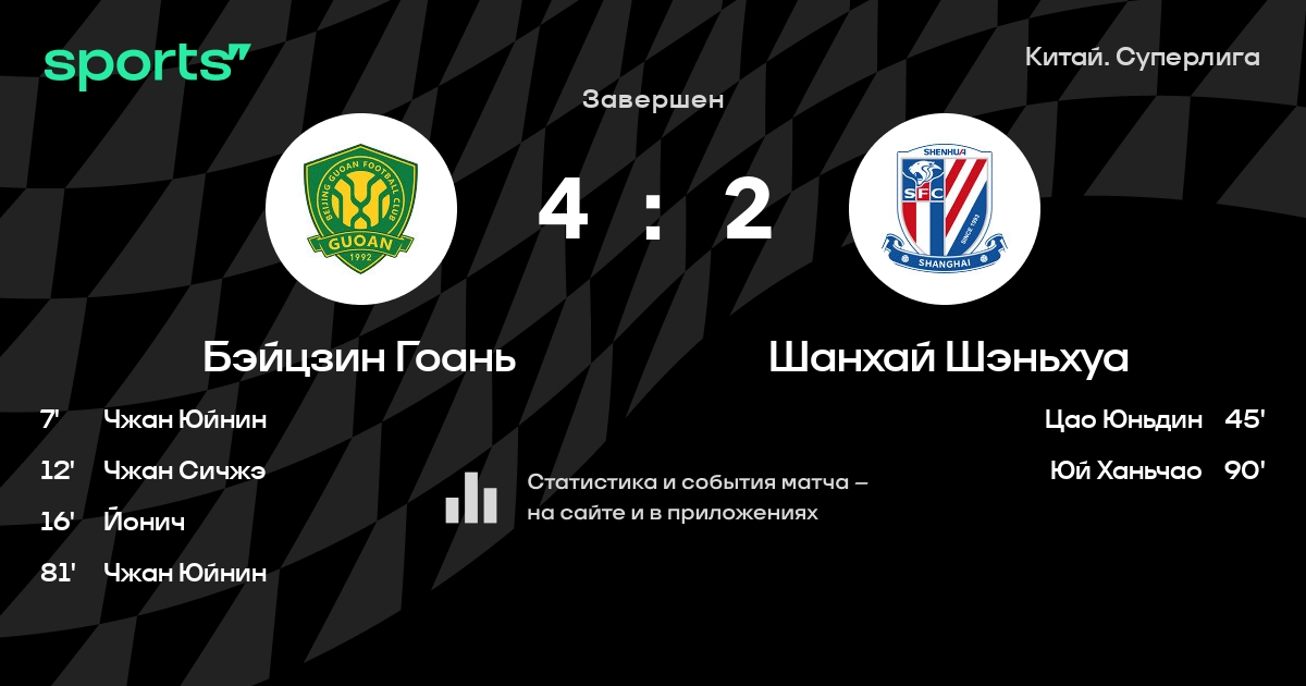Бэйцзин Гоань – Шанхай Шеньхуа: Шанхай Шеньхуа забивает в 7 последних матчах против этого соперника