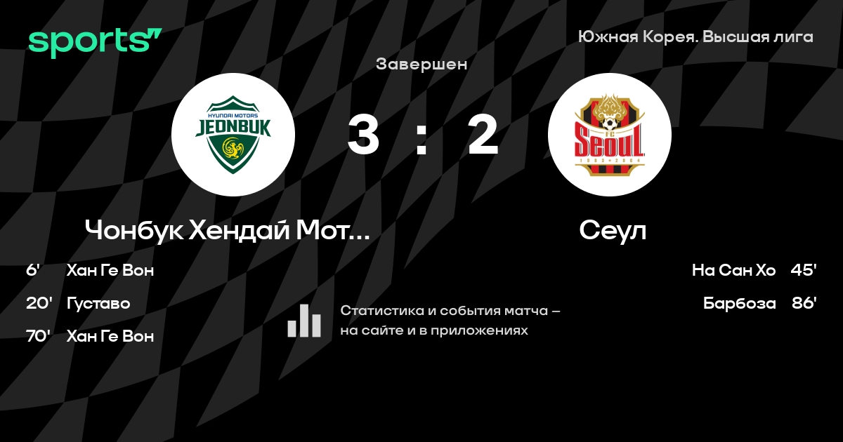 Чонбук Хендай Моторс – Сеул: Чонбук Хендай Моторс побеждает в 3 последних очных матчах