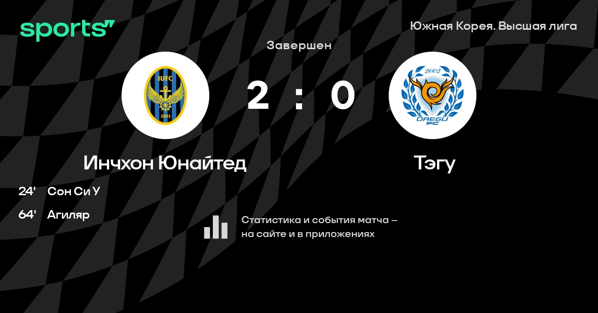 Инчхон Юнайтед – Тэгу: Тэгу не проигрывает в 6 из 8 последних матчей против этого соперника в гостях в турнире «Южная Корея. Высшая лига»