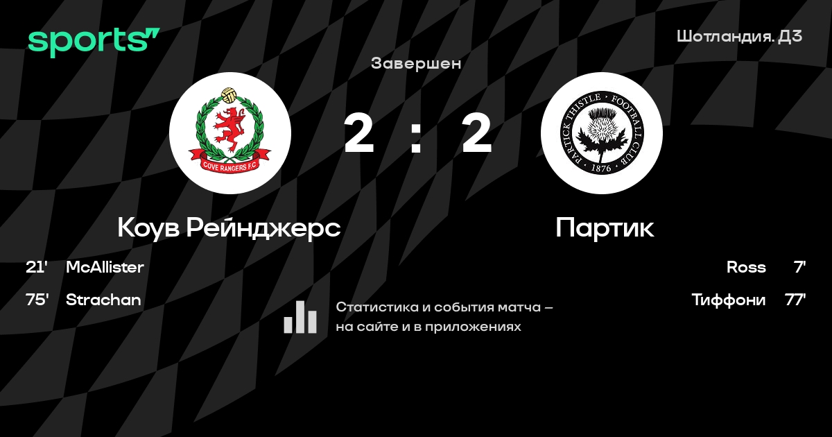 Коув Рейнджерс – Партик: Коув Рейнджерс забивает в 3 последних матчах против этого соперника