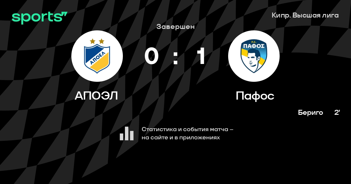 АПОЭЛ – Пафос: Пафос забивает в 4 последних матчах против этого соперника