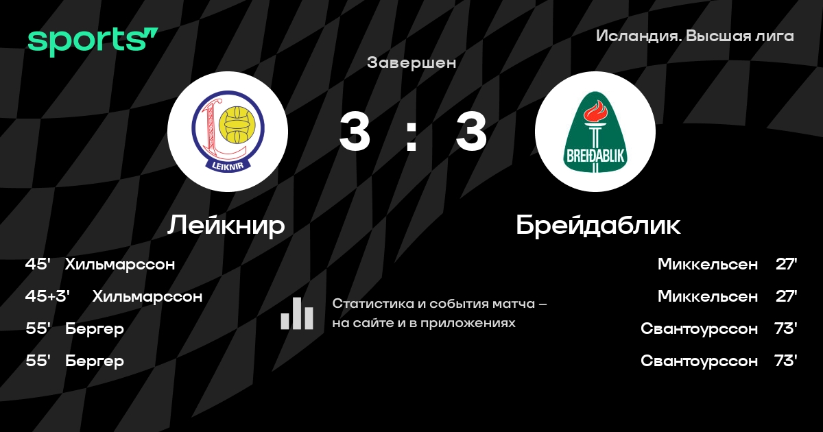 Смит - Aðalsteinsson, Гудбрандссон, Хильмарссон - Halldórsson, Хледверссон, Matthíasson, Бергер, Хильмарссон - Магнуссон, ÁrnasonЗапасные: Sigurðsson, Кристинссон, Baldvinsson, Jónsson, Паес, Эскобар, Бьорнссон