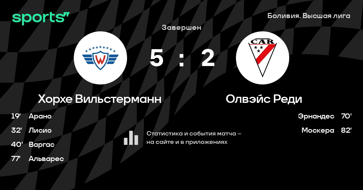 Санди - Рейес, Ортис, Бальивиан, Эчеверрия - Арано, Фернандес, Лисио, Аньес - Варгас, АльваресЗапасные: Банегас, Перес, Olivares Villarroel, Варгас, Сержиньо, Моралес, Вильярроэль, Родригес, Осорио