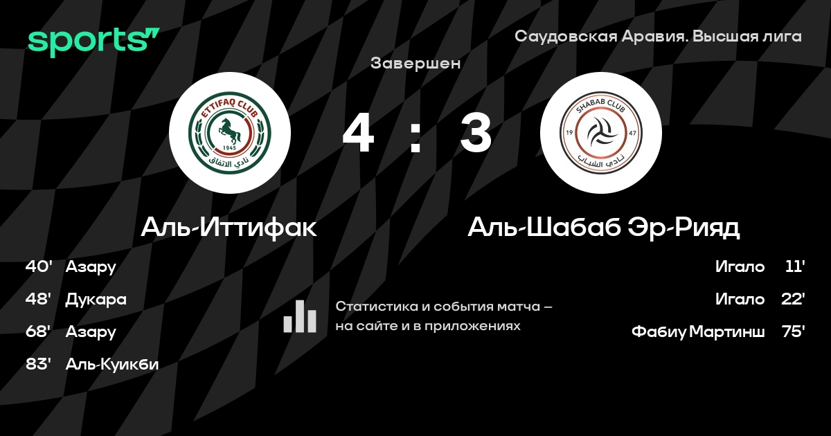 Аль-Иттифак – Аль-Шабаб Эр-Рияд: Аль-Шабаб Эр-Рияд забивает в 11 из 13 последних матчей против этого соперника