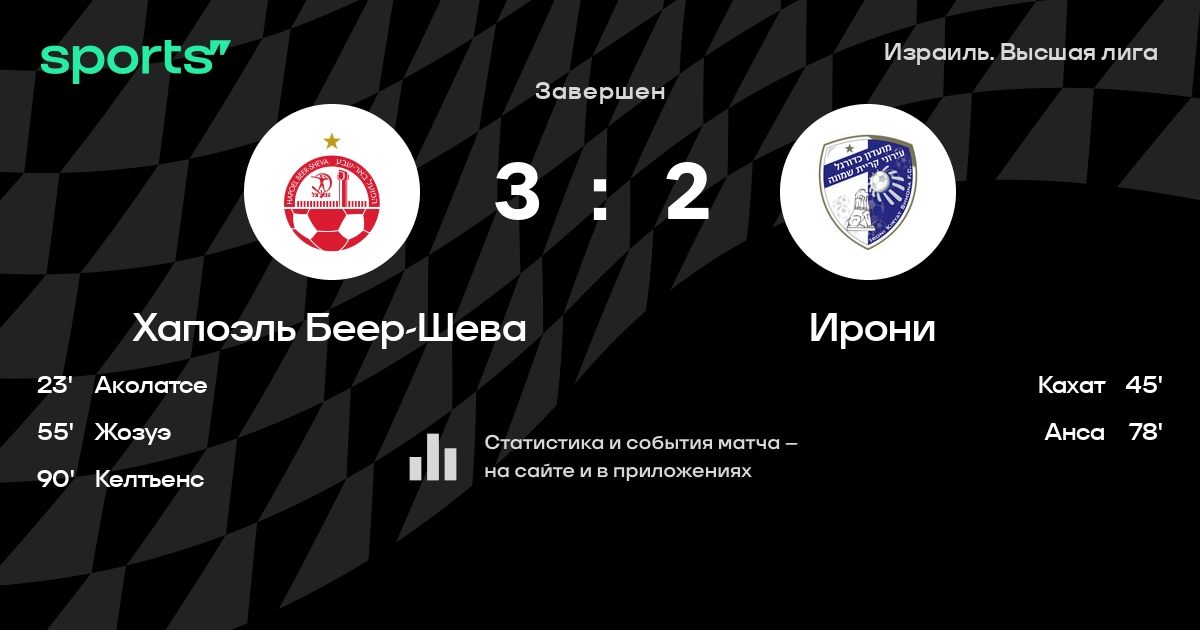 Хапоэль Беер-Шева – Ирони: Хапоэль Беер-Шева забивает в 3 последних матчах против этого соперника