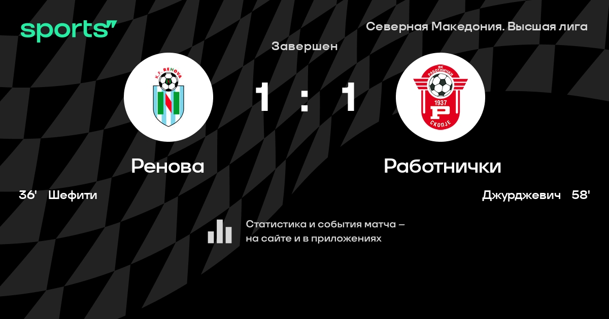 Ренова – Работнички: Работнички не проигрывает в 6 последних матчах против этого соперника