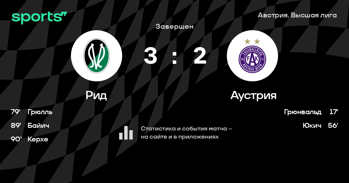 Рид – Аустрия: Аустрия забивает в 13 последних матчах против этого соперника