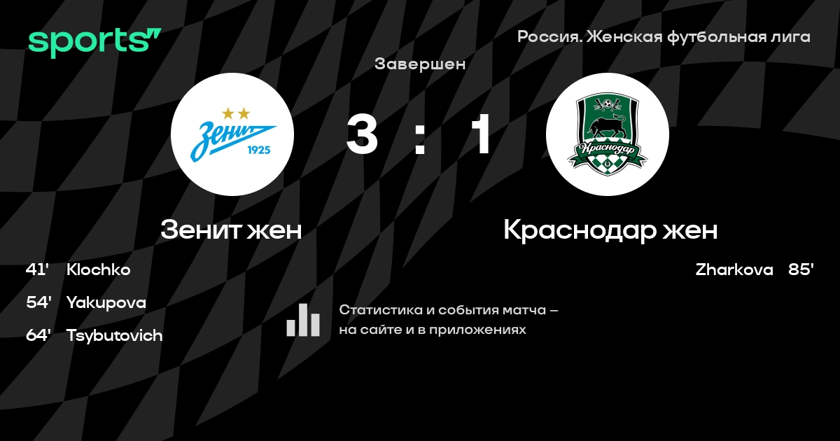 Зенит жен – Краснодар жен: Зенит жен забивает в 3 последних матчах против этого соперника