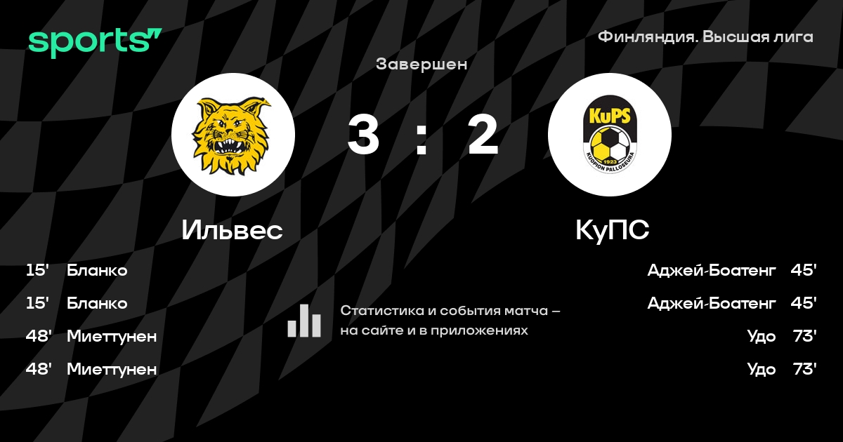 Ильвес – КуПС: КуПС не проигрывает в 7 последних матчах против этого соперника