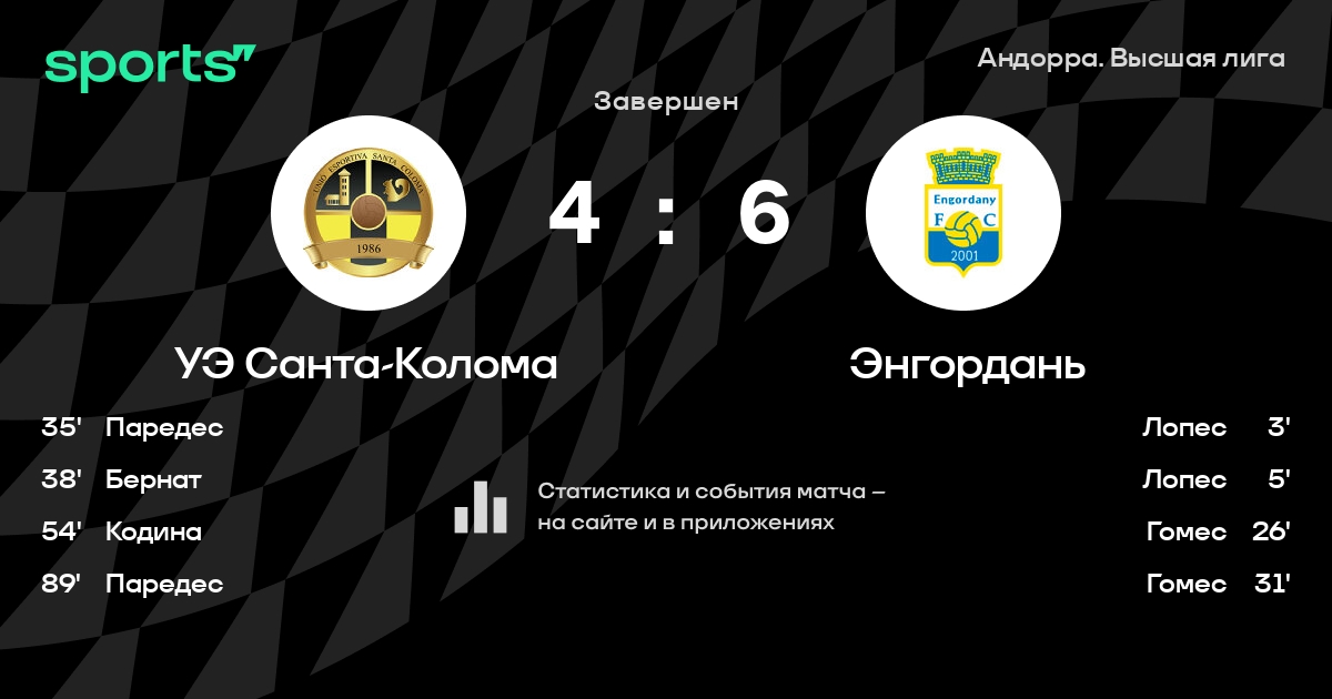 УЭ Санта-Колома – Энгордань: Энгордань забивает в 6 последних матчах против этого соперника