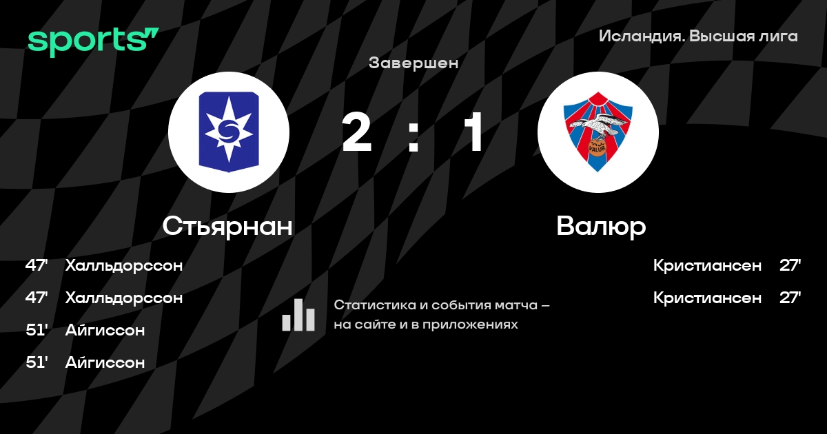 Стьярнан – Валюр: Валюр не проигрывает в 8 из 10 последних матчей против этого соперника в гостях в турнире «Исландия. Высшая лига»