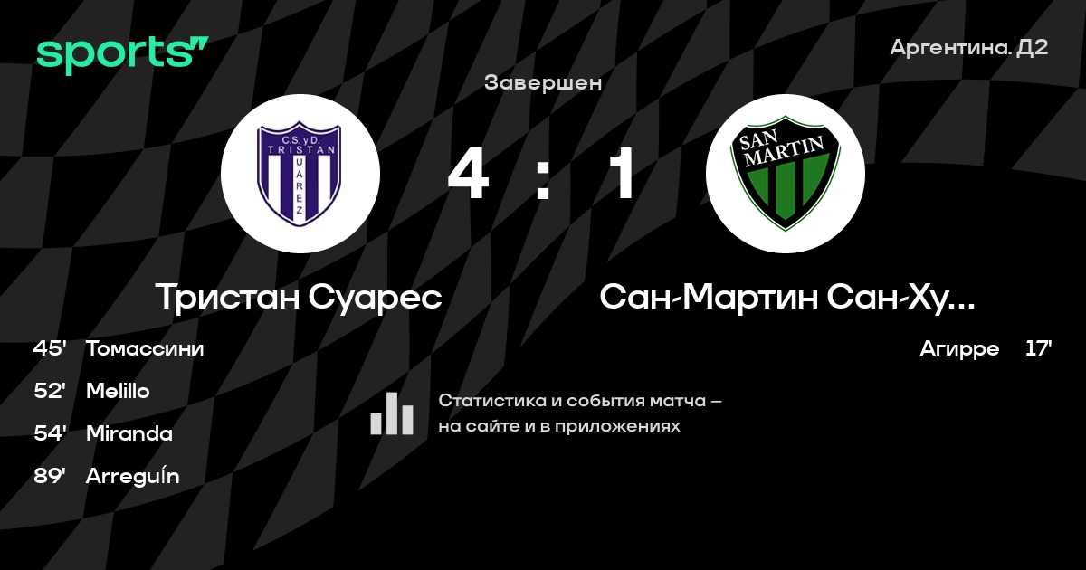 Трансляция Тристан Суарес - Сан-Мартин Сан-Хуан
