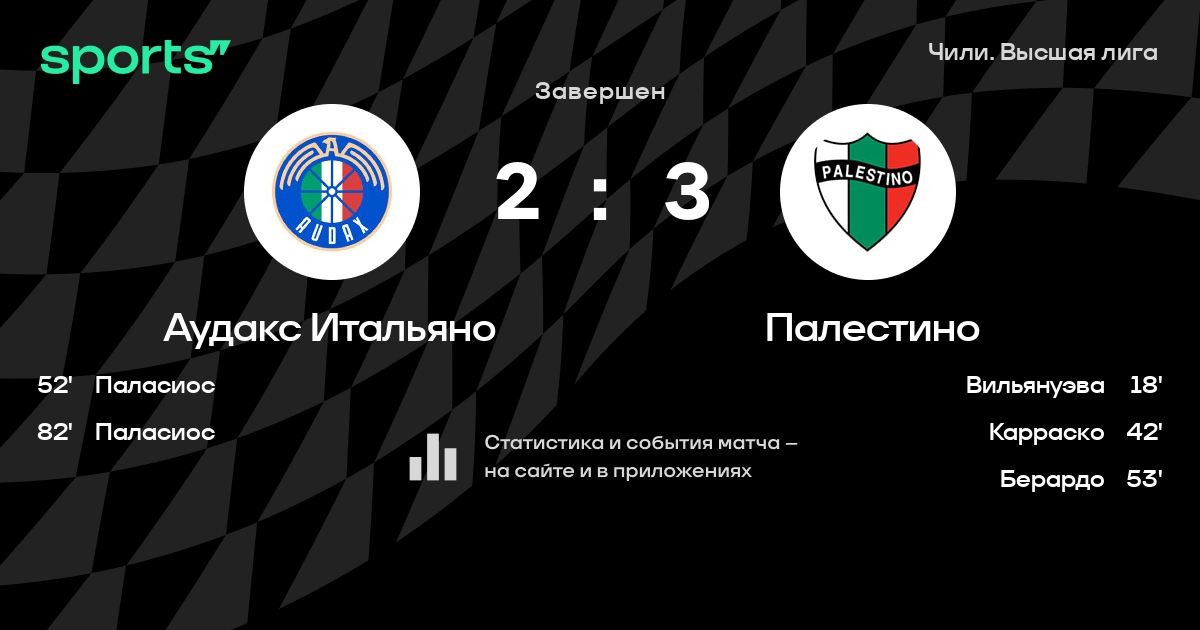 Аудакс Итальяно – Палестино: Палестино побеждает в 3 последних очных матчах в гостях в турнире «Чили. Высшая лига»