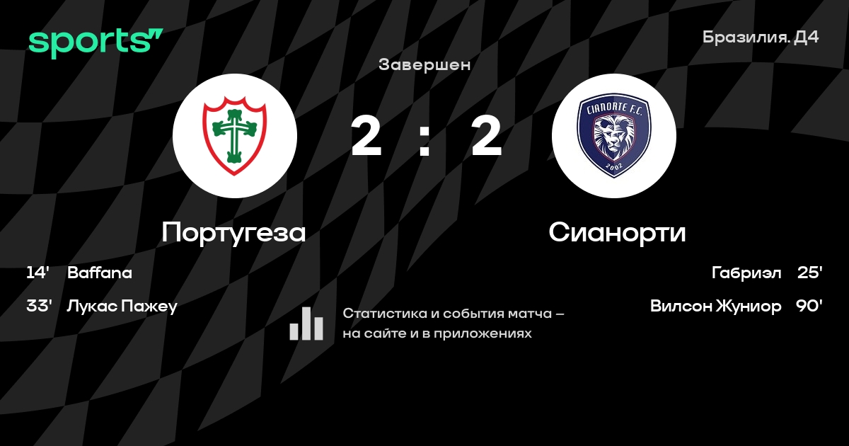 Деймисон - Жуссани, Ломбарди, Невес, Жефферсон Фейжао - Рафаэл Индио, Валфридо, Кайке - Майкиньо, Лукас Пажеу, Santana LopesЗапасные: de Oliveira Refundini, Жилберто Алемао, de Oliveira Santos, Batista da Silva, Кайо, Coca, Фелипе, Лесса, Santana Pereira, Мисаэл, Jesus Evangelista, Матеус Серафин