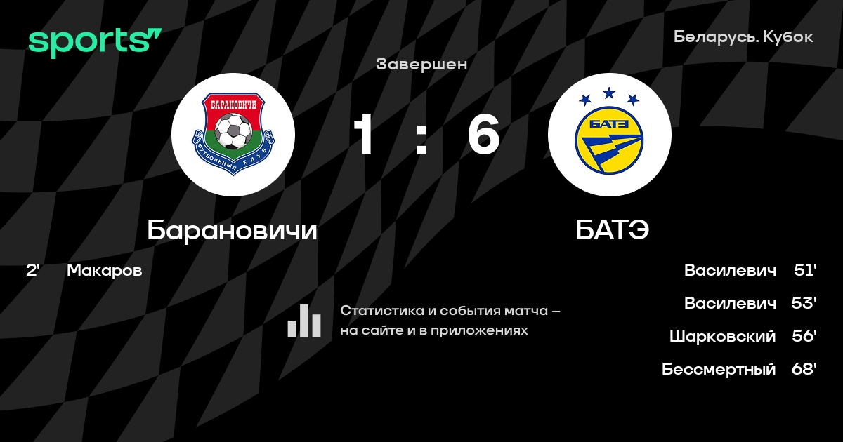 Барановичи – БАТЭ: БАТЭ побеждает в 4 последних очных матчах в турнире «Беларусь. Кубок»