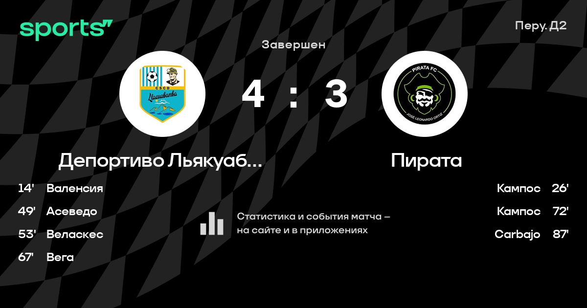 Кампос - Giancarlo Ramos Rodríguez, Leonardo Israel Zuta Cordero, Arthur Alexander Gutiérrez Inga, Майо - Diego Andrés Esquerre Morales, Obeso Panduro, Вега, Валенсия, Асеведо - ВеласкесЗапасные: Андерсон, Уангаль, Иларио, Лопес, Торрес, Рекальде, Рамос