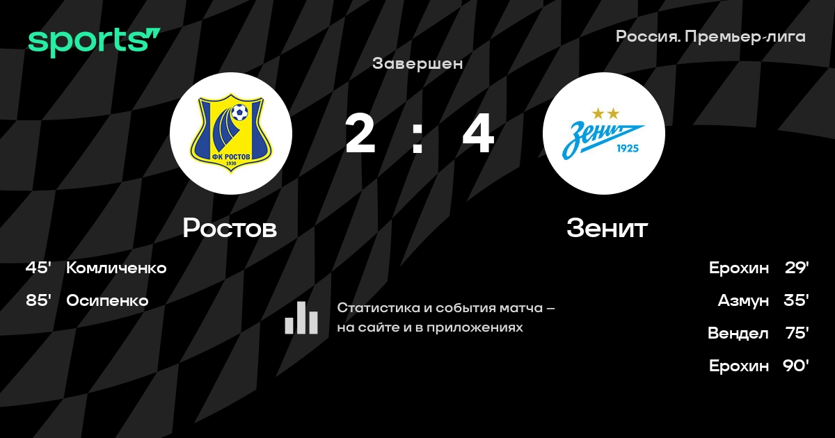 Ростов – Зенит: Зенит забивает в 4 последних матчах против этого соперника