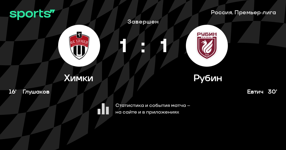 Химки – Рубин: Химки побеждает в 3 последних очных матчах в турнире «Россия. Премьер-лига»