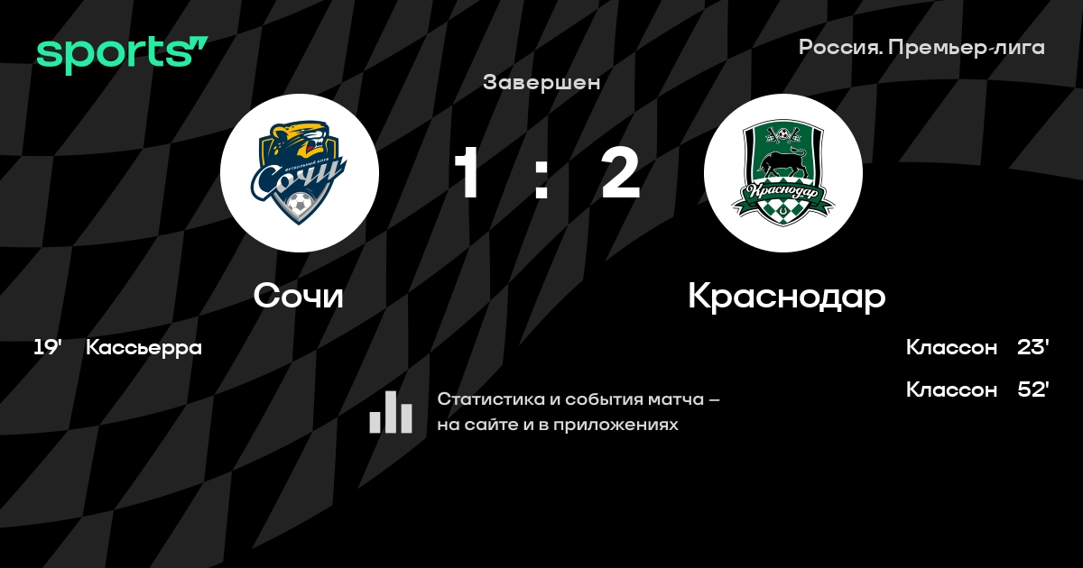 Сочи – Краснодар: Сочи не проигрывает в 5 из 7 последних матчей против этого соперника