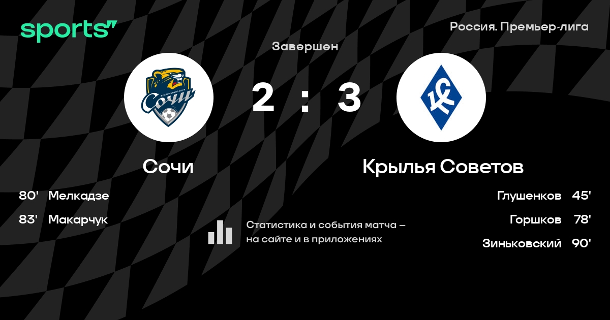 Сочи – Крылья Советов: Крылья Советов забивает в 6 последних матчах против этого соперника