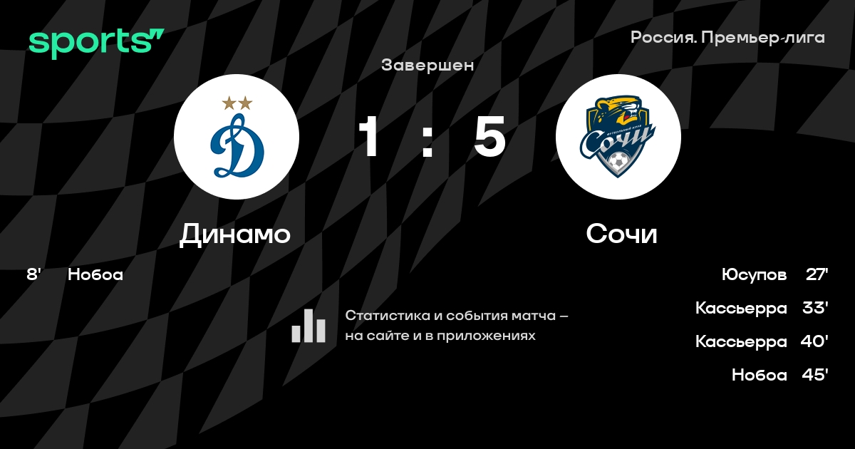 Динамо – Сочи: Сочи забивает в 8 из 9 последних матчей против этого соперника