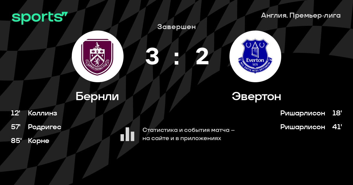 Чемпионат Англии. «Эвертон» уступил «Бернли» в гостях – 2:3