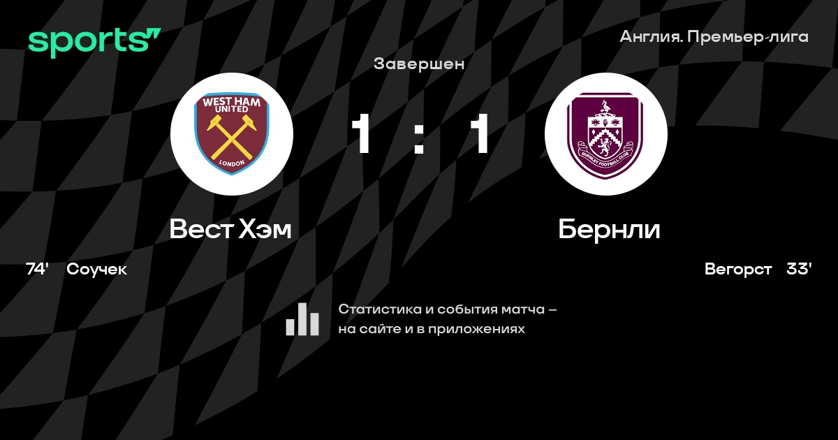 Чемпионат Англии. «Вест Хэм» сыграл вничью с «Бернли», «Ньюкасл» победил «Лестер»