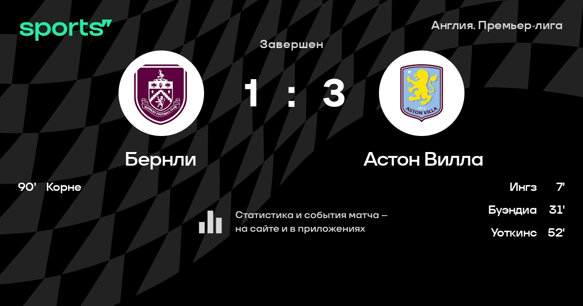 Бернли – Астон Вилла: Бернли не проигрывает в 5 из 7 последних матчей против этого соперника