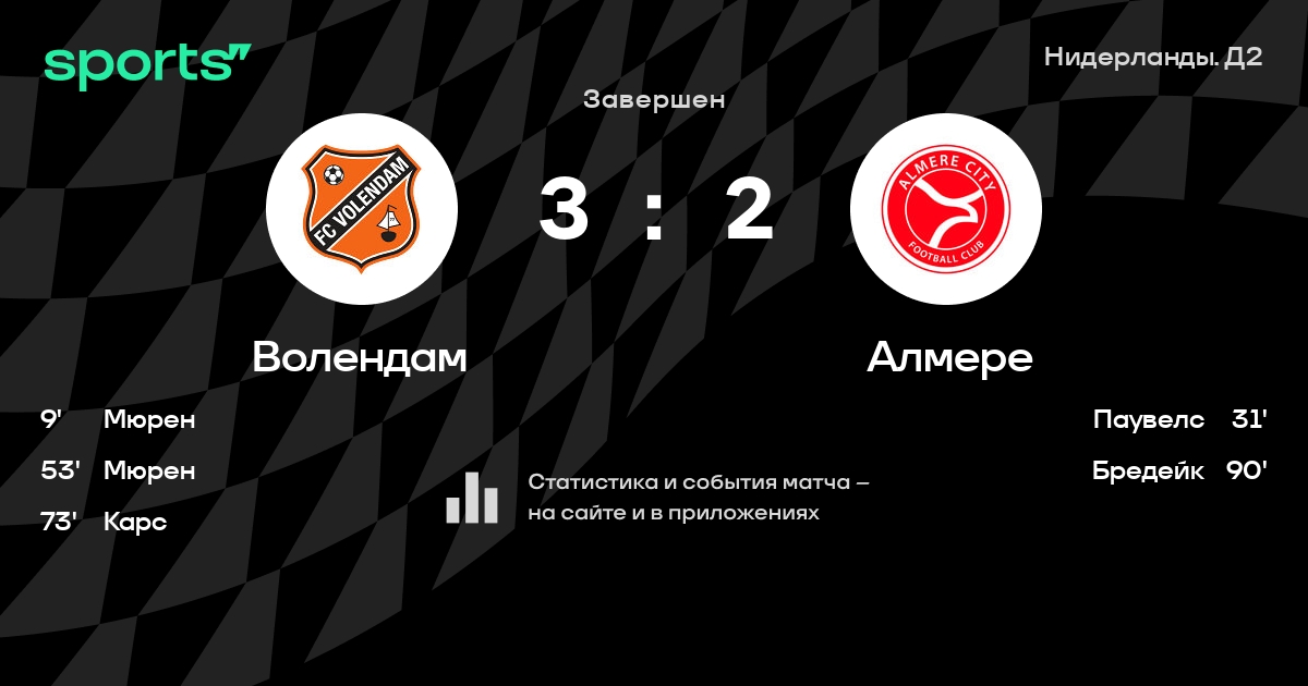 Волендам – Алмере: Алмере не проигрывает в 5 из 7 последних матчей против этого соперника в гостях в турнире «Нидерланды. Д2»