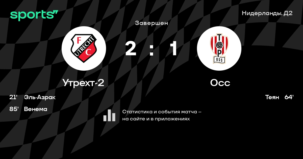Утрехт-2 – Осс: Осс не проигрывает в 6 из 8 последних матчей против этого соперника в гостях в турнире «Нидерланды. Д2»