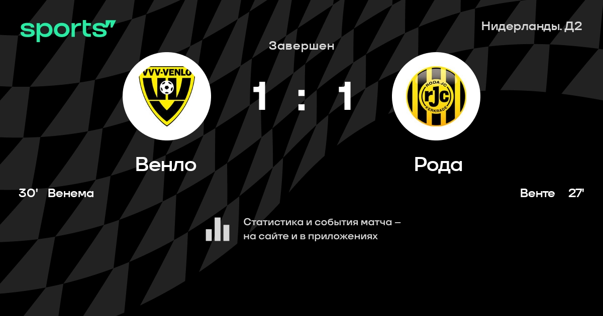 Венло – Рода: Рода не проигрывает в 7 из 9 последних матчей против этого соперника
