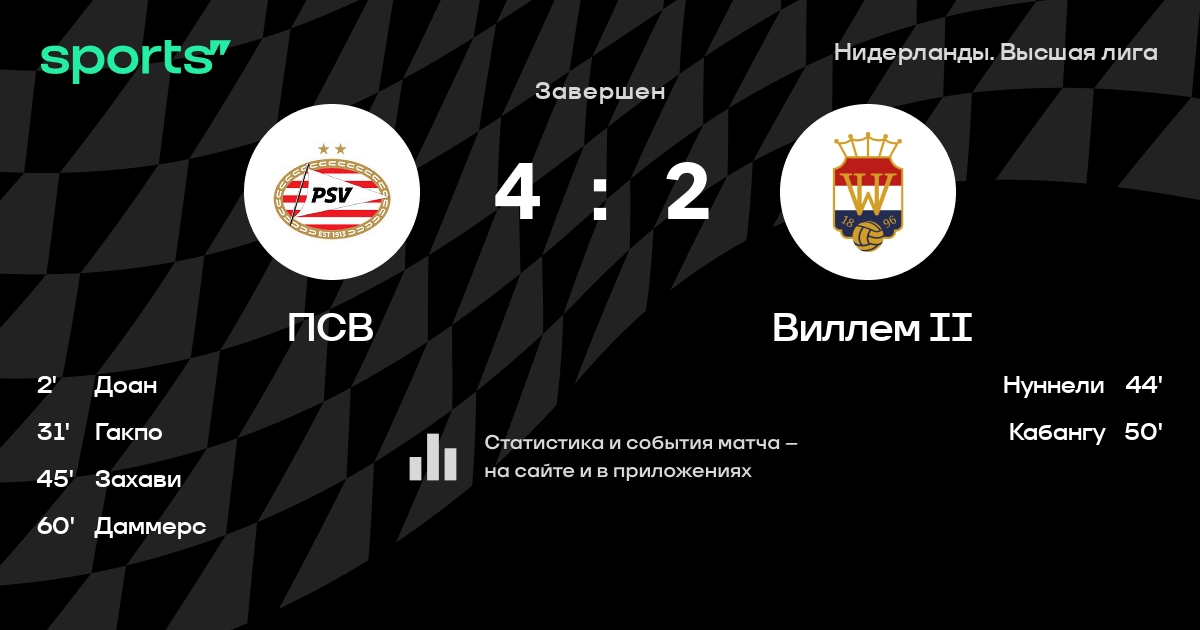 ПСВ – Виллем II: ПСВ побеждает в 14 последних очных матчах дома
