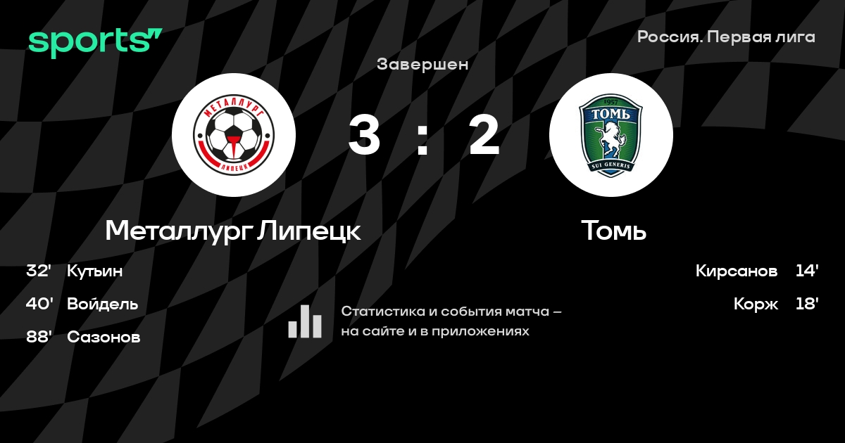 Олимп-ФНЛ. «Томь» проиграла липецкому «Металлургу» (2:3), ведя 2:0