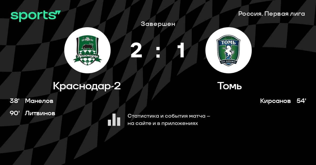 Краснодар-2 – Томь: Томь не проигрывает в 5 из 6 последних матчей против этого соперника