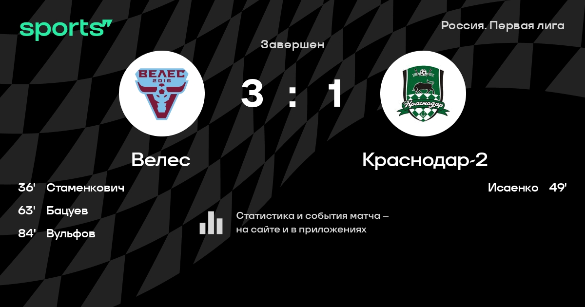 Краснодар-2 проигрывает в 3 последних матчах в гостях в турнире «Россия. Олимп-ФНЛ»