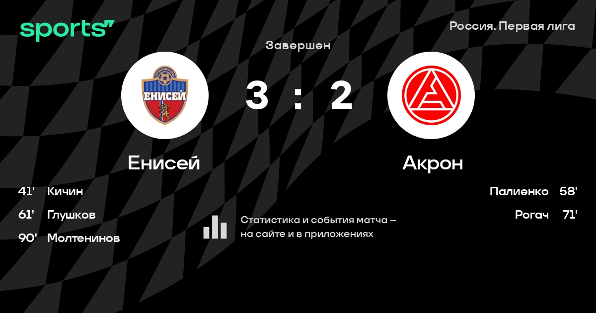 Енисей – Акрон: Акрон забивает в 3 последних матчах против этого соперника