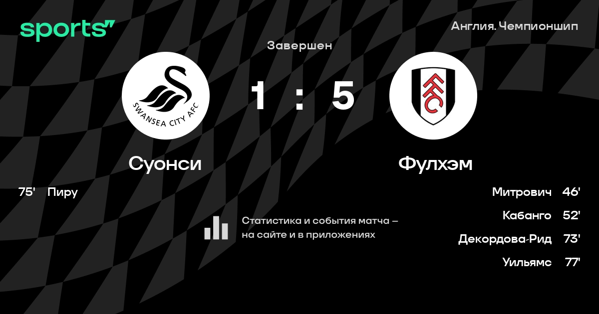 | 1 | Фулхэм | 46 | 27 | 9 | 10 | 106 | 43 | +63 | 90 | ||