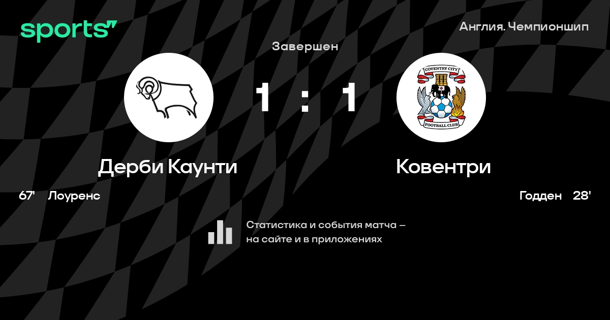 Дерби Каунти – Ковентри: Ковентри не проигрывает в 6 из 8 последних матчей против этого соперника в турнире «Англия. Чемпионшип»