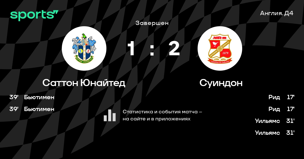 Трансляция Саттон Юнайтед - Суиндон
