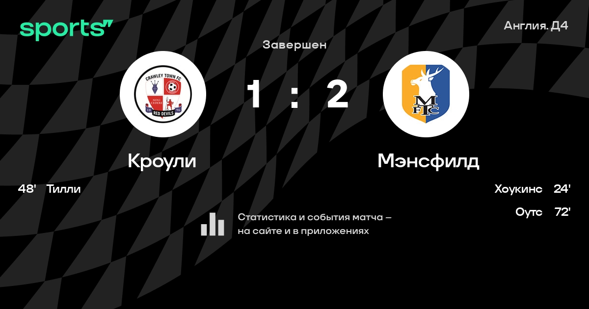 Кроули – Мэнсфилд: Кроули не проигрывает в 7 из 9 последних матчей против этого соперника