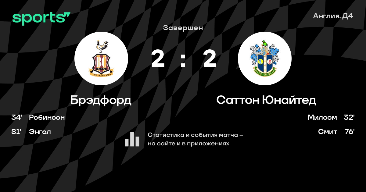 Саттон Юнайтед проигрывает в 3 последних матчах в гостях в турнире «Англия. Вторая Лига»